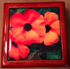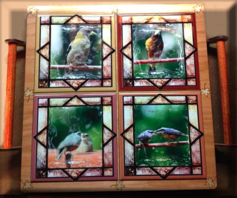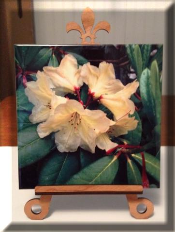 Trivet combining Dye Sublimated ceramic tiles and Laser cut wood.