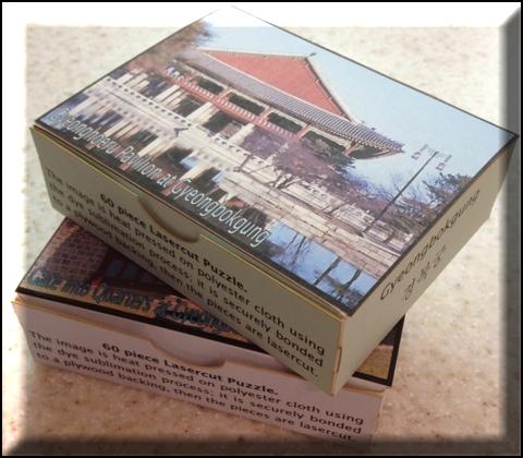 These puzzles are made by heat pressing image on polyester cloth. Then the image is attached to 1/8" baltic birch plywood and the pieces are laser cut. They can be made as tray puzzles or loose pieces in a custom made box.